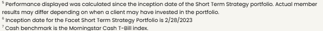 Facet’s Short-Term Strategy (STS) is designed to produce stable returns commensurate with the yields available in shorter-term bonds. The strategy is designed for members with money goals that are only a year or two away.